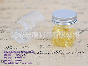 此款规格为直径44mm,口径40mm,高度89mm,容量70ml。原材料采用优质高硼硅玻璃,制作工艺为管制。款玻璃瓶主要用于高档保健品,虫草含片,玛咖精片,鹿茸胶囊,参茸,山参片,虫草粉,蜂胶,鱼油,燕窝,海参等高档奢饰品。